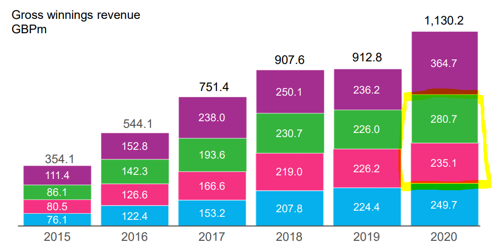 Relax gaming osto näyttää ihan hyvältä. 31% liikevaihtokasvua viime vuodesta ja firma on ostettu 2021 vuoden luvuilla 24,6 EV/EBIT hintaan. Relaxin lisäksi on seuraavan 2-3 vuoden kasvu ajureina tietenkin Hollanti, Amerikka ja Kanada.