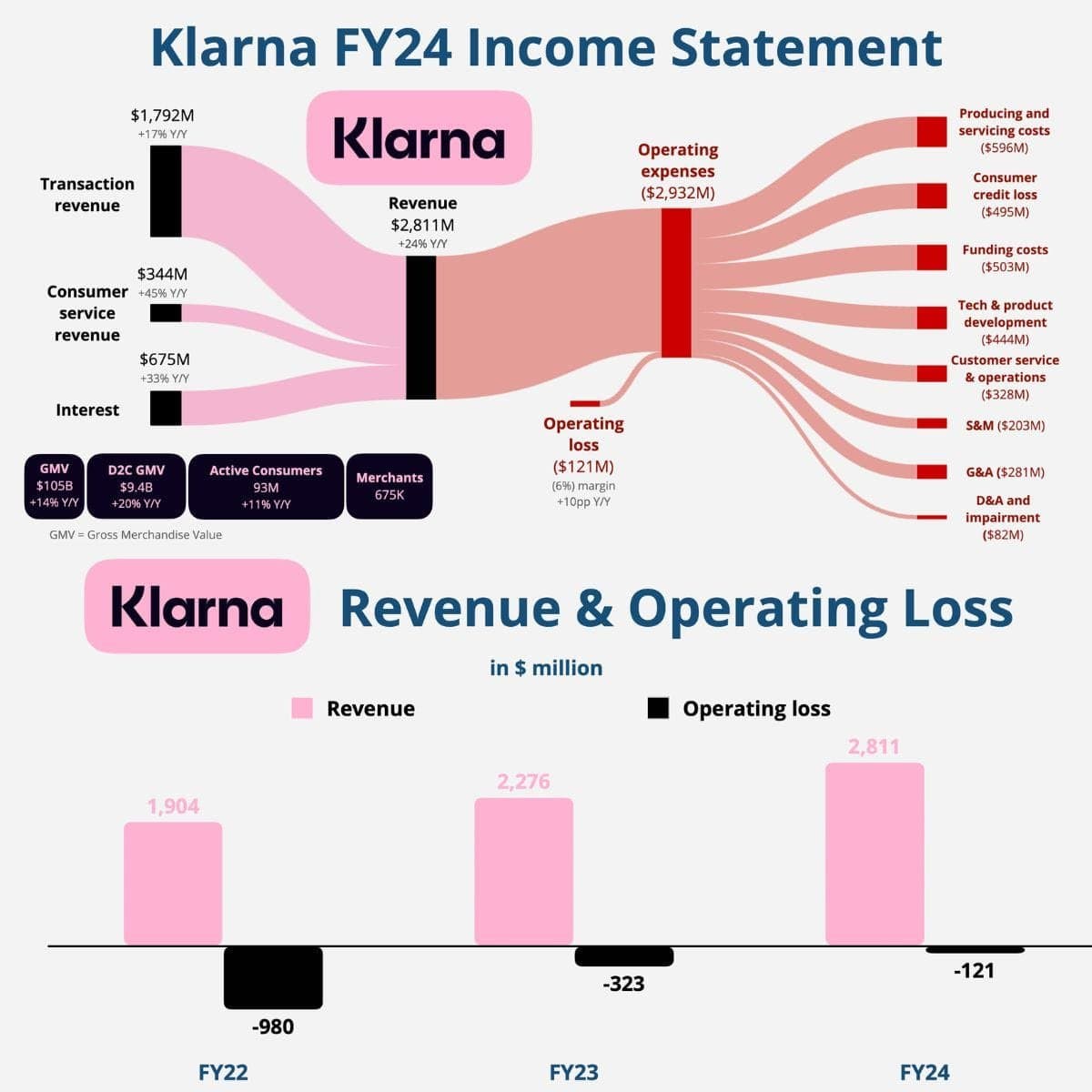 Alla on juttua siitä, miten Klarna ilmoitti ensimmäisen kvartaalinsa tappioidensa kaksinkertaistuneen edellisvuoteen verrattuna, mikä johtui kertaluontoisista kustannuksista, kuten poistoista ja uudelleenjärjestelyistä.