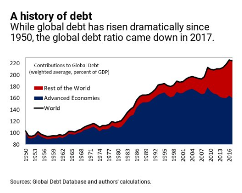 Sitten itse pohdintoihin: Tuolla linkin kuvauksessa kerrotaan, että “Tätä ajanjaksoa (k-syksy) seuraa yhteiskunnan voimakas velkaantuminen, joka on juuri päinvastaista kuin K-keväällä, jolloin velkaa vältetään kuin ruttoa. Nyt asiat ovat päinvastoin. Velaton ihminen on yhteiskunnan poikkeus, kun K-keväällä asia on päinvastoin, velkainen oli se poikkeus. K-syksylle ominaisia piirteitä ovat disinflaatio, korkotason putoaminen K-kesän huipusta ja velkaantuminen.” Nämä merkit ovat kyllä ihan tunnistettavia, mutta K-syksyn ja talven välinen ero hämärä. Esim. K-talven tunnusmerkkiä velan lisääntymisen pysähtymiselle ei kyllä vielä voi allekirjoittaa. Verneri taisikin tuolla Pörssien suunta-ketjussa linkittää aikaisemmin kuvion, jossa näkyy globaalin velan kasvu.