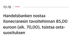 Inderes ei enää Konecranesia seuraa, mutta osui Kauppalehdestä silmiin Handelsbankenin näkemys.