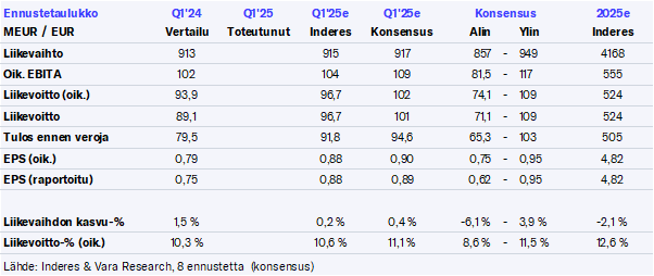 Ennusteet odottavat vakaata liikevaihdon kehitystä ja lievää operatiivista kannattavuusparannusta vertailukaudesta. Odotuksissa on myös, että yhtiö toistaa kuluvalle vuodelle annetun ohjeistuksensa, joka viitoittaa vakaata liikevaihdon kehitystä ja vakaata tai paranevaa operatiivista kannattavuutta.