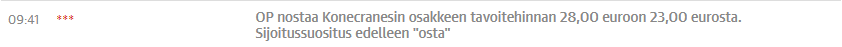 Cargotec ja Konecranes tavoitehintoja on nosteltu, viimeksi OP nosti tänään Konecranes.