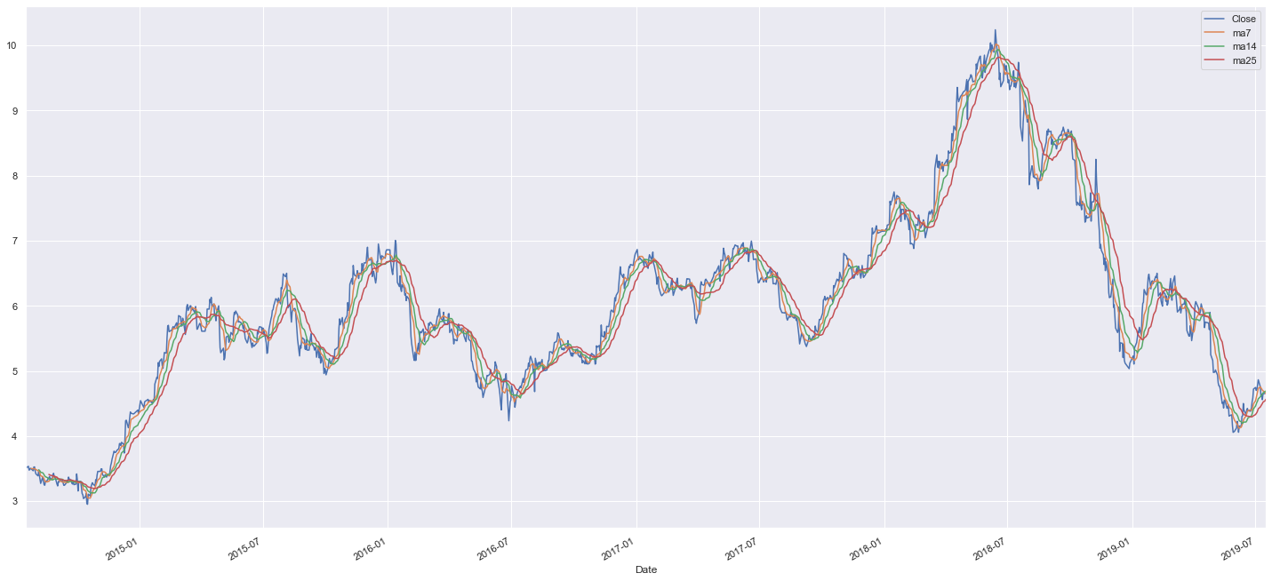 Käyttäen avuksi lineaarista keskiarvoa voimme myös illustroida miltä kurssi näyttää keskiarvoiseen luisumiseen nähden: