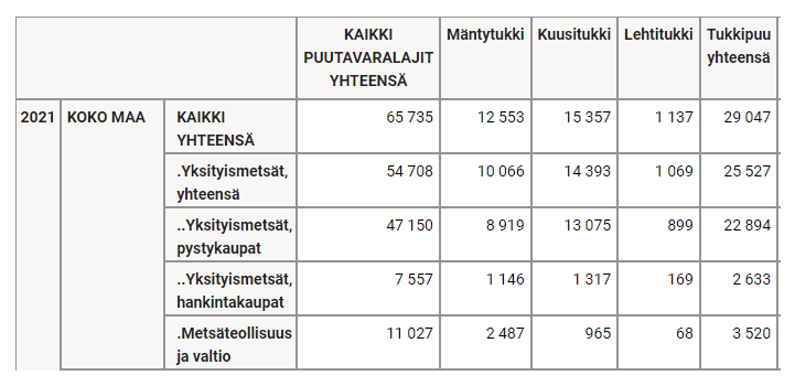 https://statdb.luke.fi/PXWeb/pxweb/fi/LUKE/LUKE__04%20Metsa__02%20Rakenne%20ja%20tuotanto__06%20Puun%20markkinahakkuut__04%20Vuositilastot/01a_Teollisuuspuun_hakkuut_maak_v.px/table/tableViewLayout2/?loadedQueryId=733e9a71-4f03-43a8-8db4-6a34271b9340&timeType=top&timeValue=1