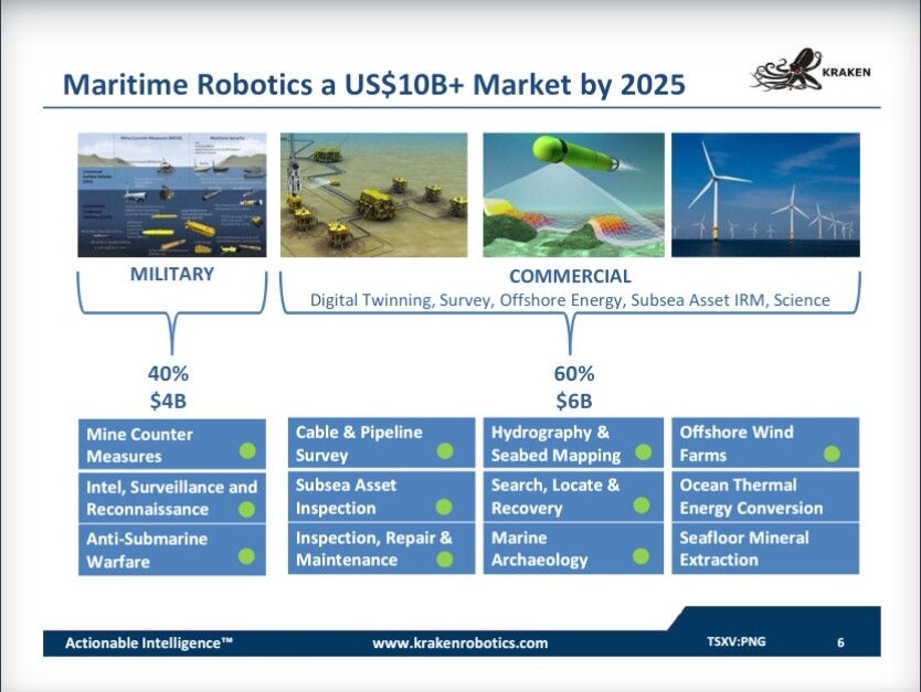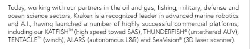“Kraken is expecting an additional contract for a custom payload section that will allow for easy transfer of the MINSAS system between the customers AUVs from two different AUV manufacturers. This is an industry unique capability of Kraken’s SAS systems.”