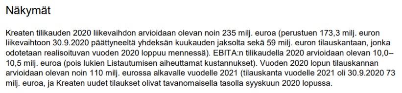 Kreate sanoi juuri webcastissa koko 2020 luvut. Oliko noita sanottu missään ennen?