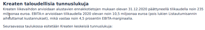 Kreate ilmoitti tänään 2020-01-25 pyrkivänsä pörssiin.