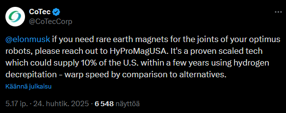 In the longer term - assuming that trade relations between China and the United States normalize even a little, the sector’s outlook is still better than before liberation day. Now that it has become clear that China is willing to use minerals as a weapon, states are likely to further increase their support for the sector - which, of course, increases investor interest - improves financing prospects, and a snowball effect is underway. Support from states, and especially the United States, has increased even before recent events.