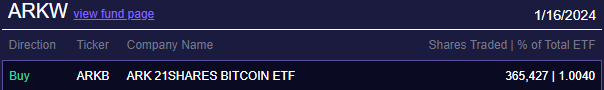 Pitäisi täsmätä aika lähelle, jos lasket Assets-sarakkeen luvun jaettuna Bitcoinin kurssilla (esim. 43.000 dollaria). Blackrockin (IBIT) on ainakin useassa lähteessä vahvistettu 11439 BTC ja BITB pitäisi olla 5359 BTC.