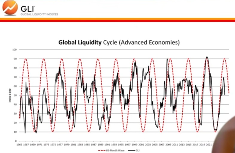 Howellâs GLI has turned downwards in recent months. And the GLI peak coincided, surprise surprise, almost to the day with the Bitcoin peak. This is also very logical, as according to Howell, Bitcoin reacts to changes in GLI first.
