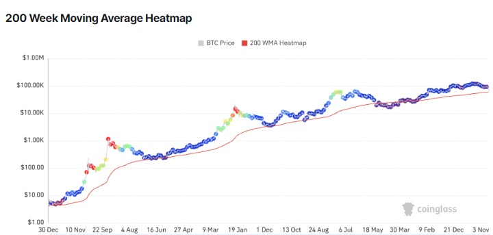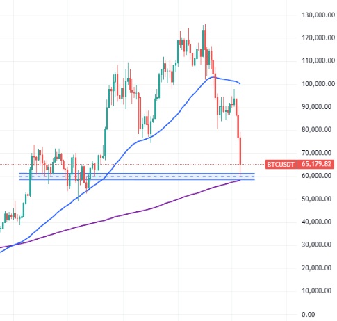 The price target is currently the 200-week moving average, which is shown in purple on the chart below. It is at approximately the $58k level, meaning the price already almost touched this trendline a week ago.
