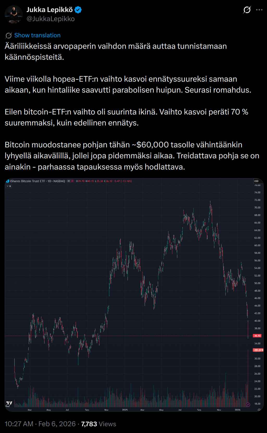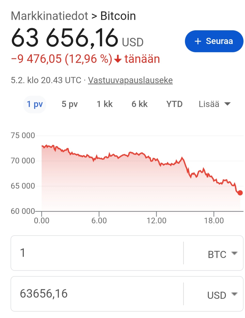 In Finland, some local investment veteran is brought into the headlines to bemoan how the value of Bitcoin cannot be determined. Example: Bitcoin on syöksykierteessĂ€ â Vesa Puttonen ei jaksanut enÀÀ, myi omansa pois: "En pysty ymmĂ€rtĂ€mÀÀn"