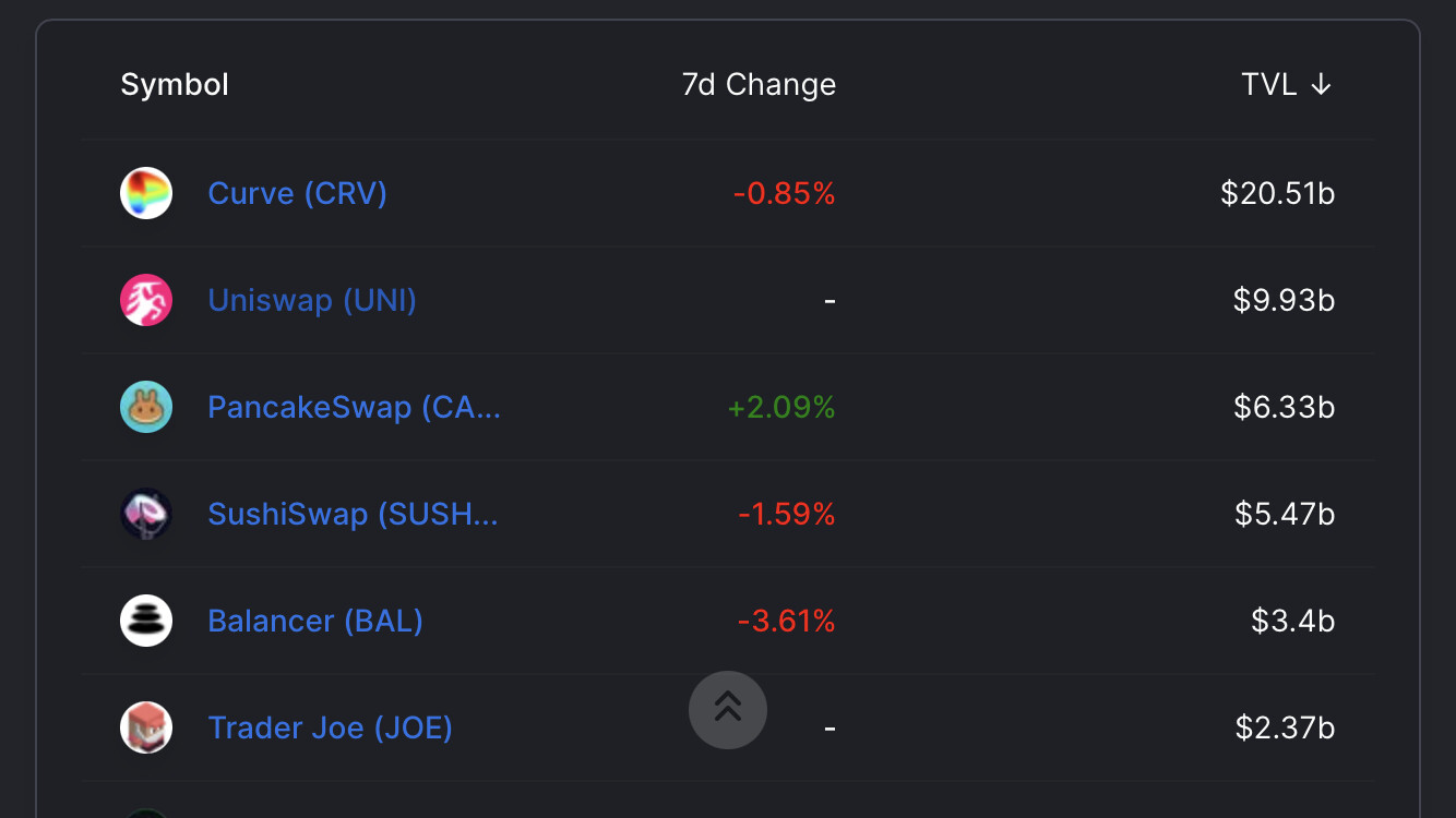 I still think it’s a sleeper, TVL is 2x larger than Uniswap but Uniswap’s market cap is 6x.