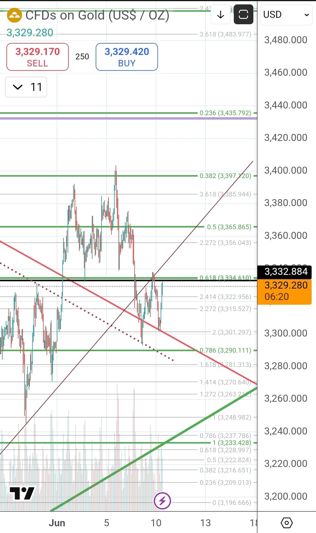 Ja juuri näin siinä näyttää käyneen. Vielä kun päästäisiin 3330-3340 resistanssitason ja ohuella punaisella merkatun nousevan trendin yli niin tästä on hyvä jatkaa ylemmäs.