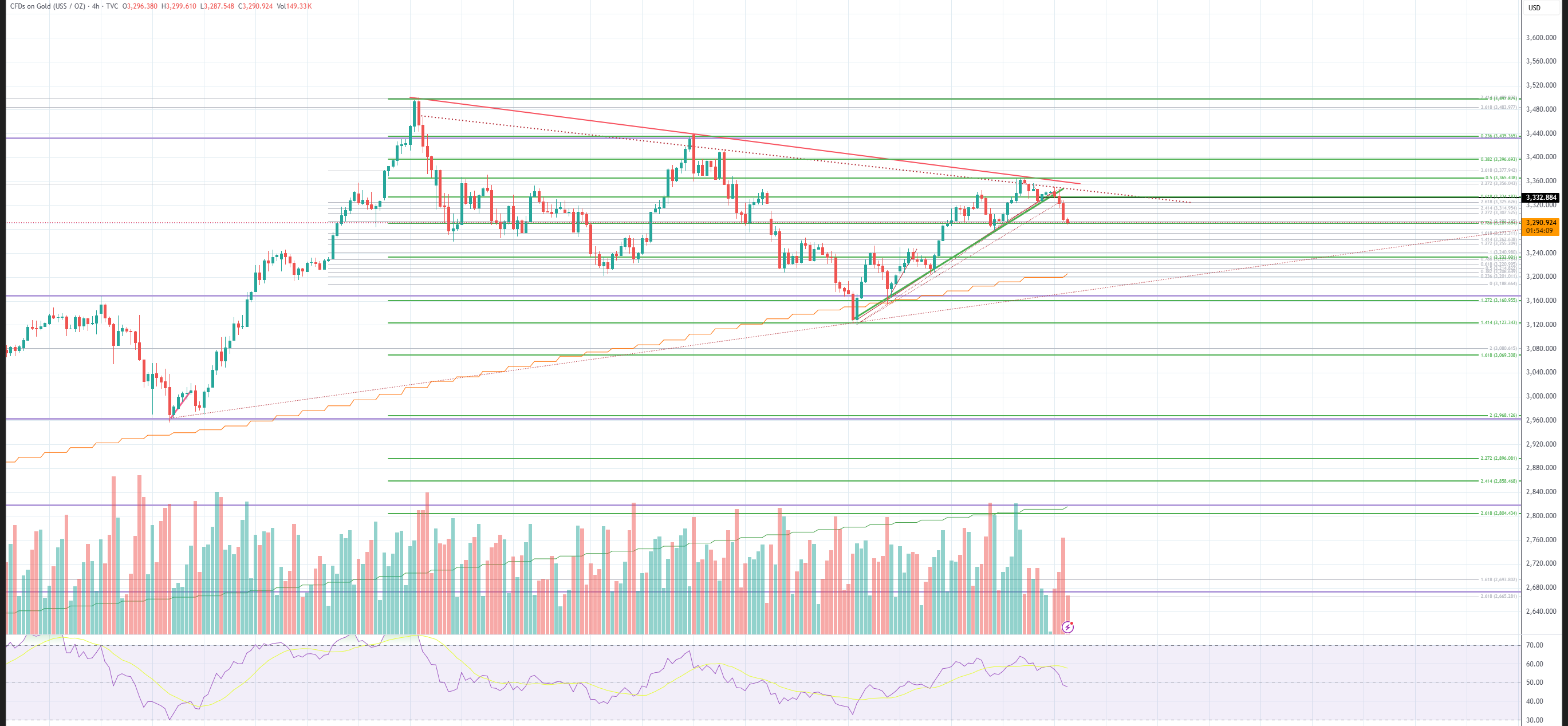 Tariffien jäädytys, samanaikaiset vientikiellot ja syntynyt täysi epävarmuus koko kauppasopimusten uskottavuudesta oli kuitenkin ehkä sen verran suuri muutos jonka myötä saatetaan päästä hiukan kuvan optimistista käyrääkin paremmalla käyrällä ylös, eli pohjat saattoi jäädä aamun 3250usd/oz tasolle. Tässä ollaankin hyvin lähellä murtautumista ylös laskutrendistä. Allekirjoittanut vaihtoi jo longeihin. 3400 saatetaan ottaa kiinni hyvinkin pian