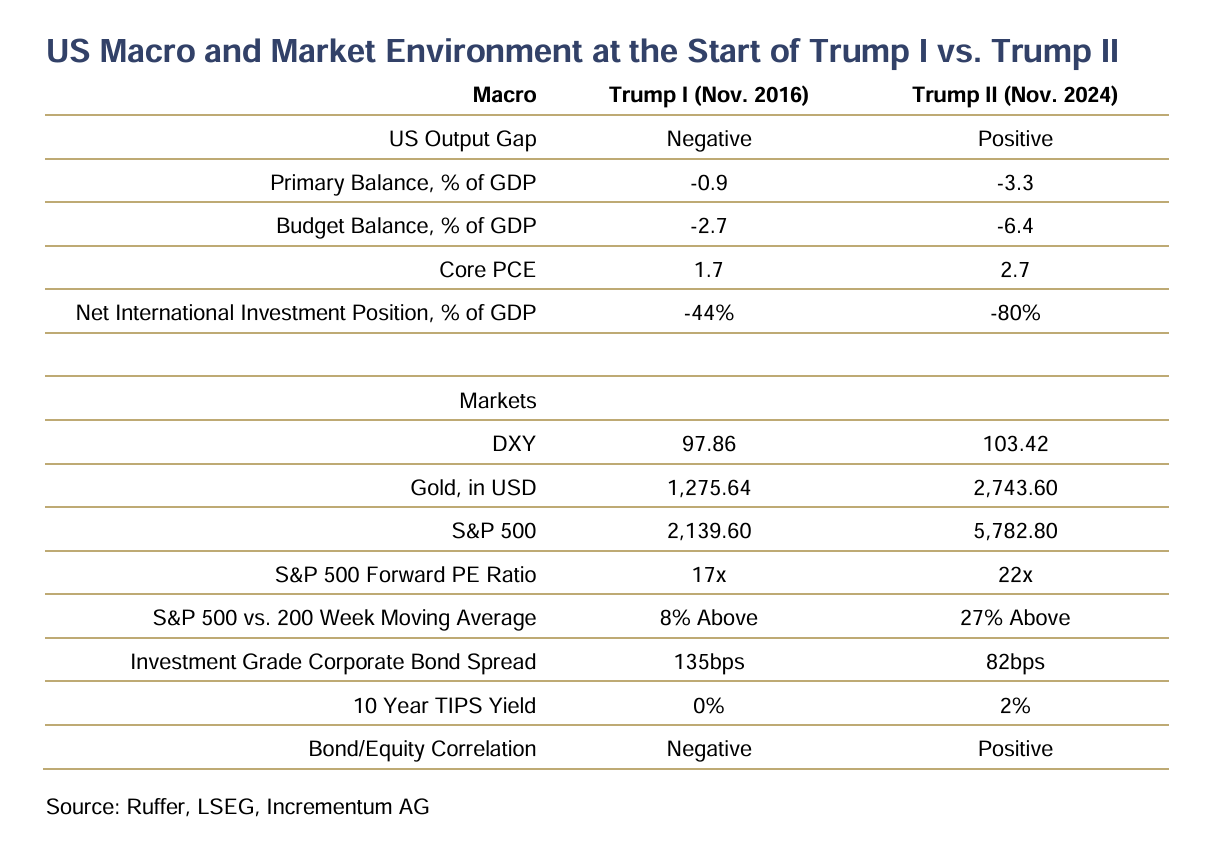 Trumpin toinen kausi alkoi hyvin erilaisissa markkinaoloissa ja lähtökohdissa.