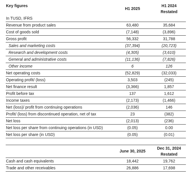 • Cash position remains strong while funding strategic growth initiatives and investing in working capital, with cash and cash equivalents totaling USD 18.4 million as of June 30, 2025 (December 31, 2024: USD 19.8 million)