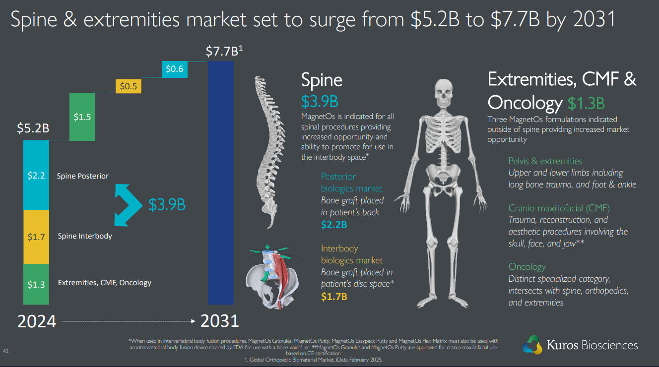 ◦ Kuros panostaa korkeimman tason kliinisen näytön tuottamiseen, mikä on harvinaista synteettisten luunsiirteiden markkinoilla, joilla FDA ei yleensä vaadi kliinistä dataa 510(k) -hyväksynnässä.