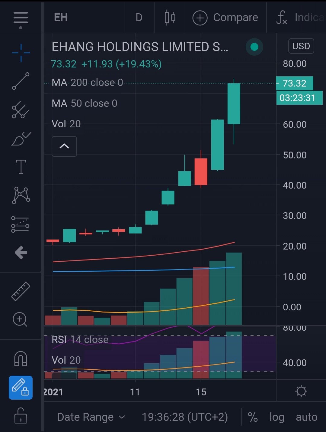 Korkataas se ainoa tämän pyhätön osalta … Että semmoinen kurssikäyrä Ehangilla. Esihistoriassa, eli viime viikolla, close 26.06 ja nyt kuudentena pördepäivänä tuon jälkeen vedellään 70 pohjoispuolella. Tällainen +20 % on siis täysin normipäivä EH:n osalta ![]()