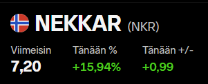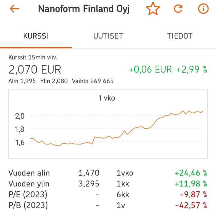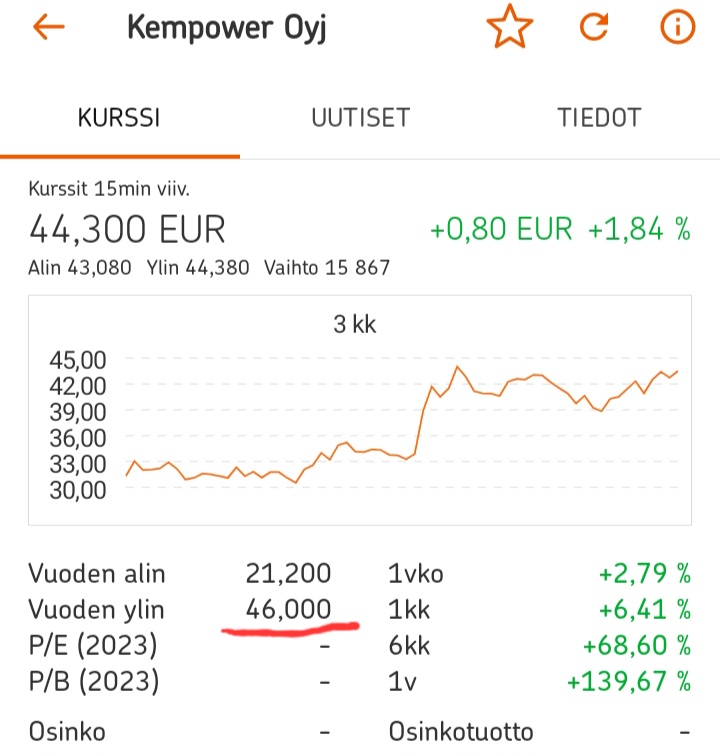 Tämän päivän kurssikehityksessä ei sinänsä ole mitään uutta ja ihmeellistä, mutta se mitä tässä nyt änkytän on se, että ollaan 1,7 euron päässä ATH:sta. Hurjaa on kyllä meno. Mukavaa olla kyydissä edelleenkin. Hyviä uutisia tulee jatkuvaan tahtiin, eikä negatiivisia uutisia ole tullut kertaakaan, mitä tässä nyt vuoden olen ollut mukana.