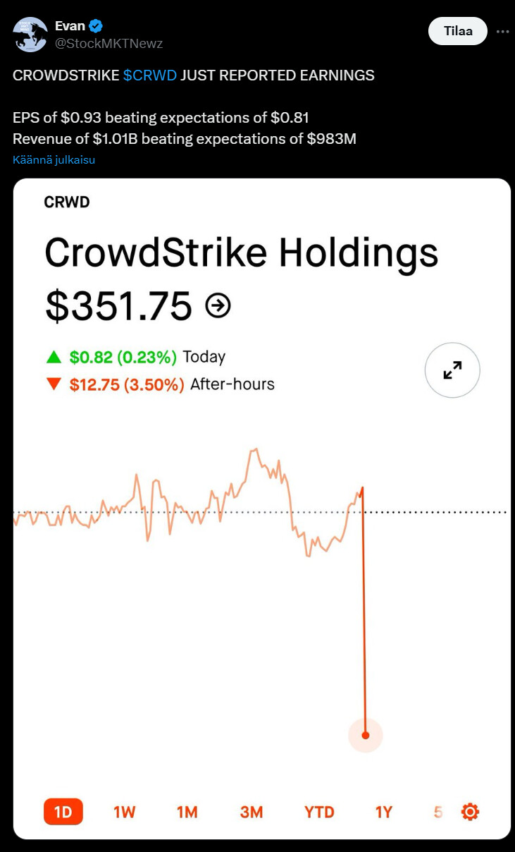 Näin CrowdStriken osake reagoi Q3-tulokseen.
