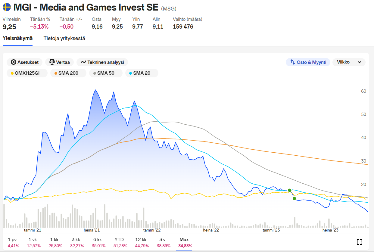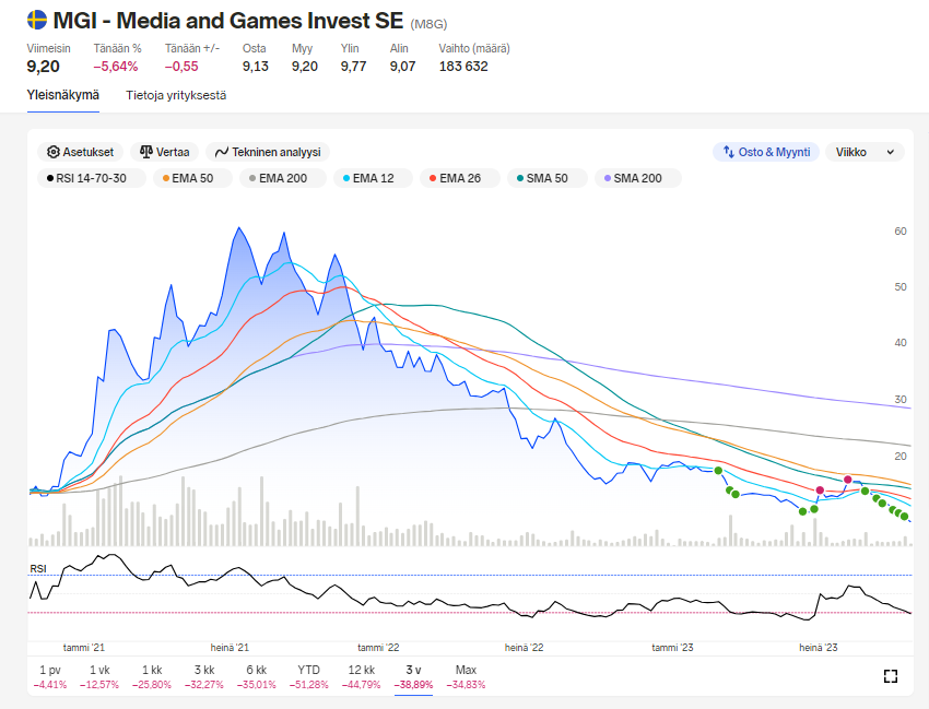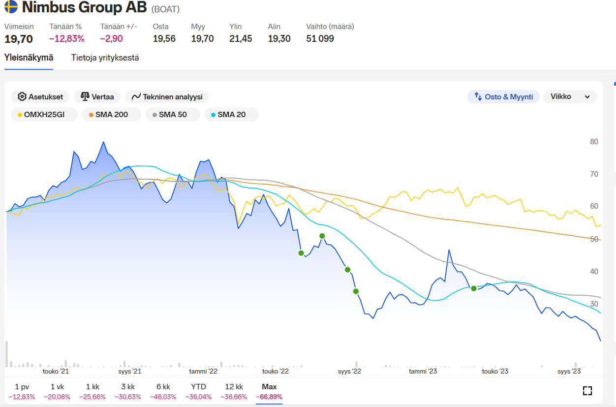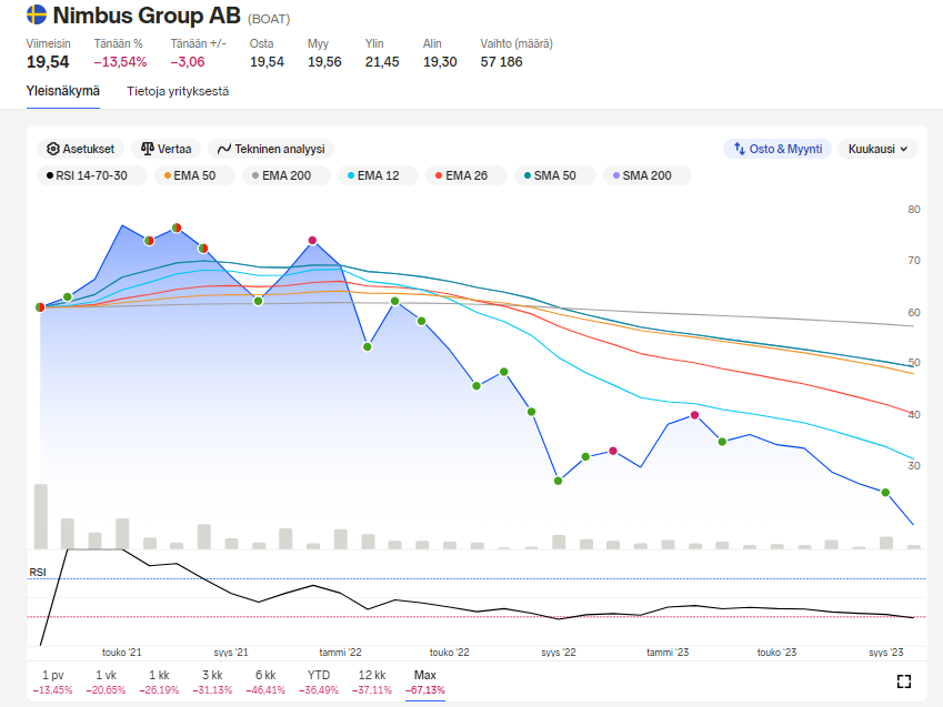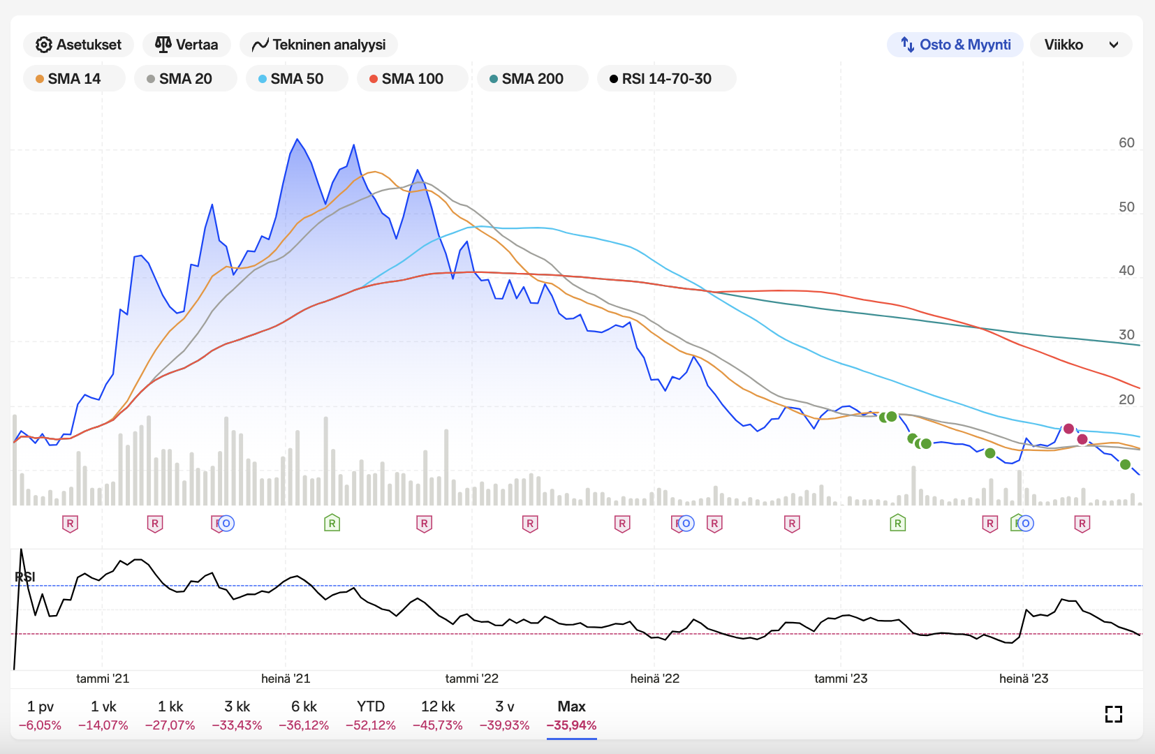 The silver lining here is that, at this rate, the additions to my accumulation plan at every 5% drop will soon be completed. At least the misery will be over quickly if the company hits zero in a couple of weeks, rather than the two-year ordeal seen with other stocks on the Helsinki exchange.