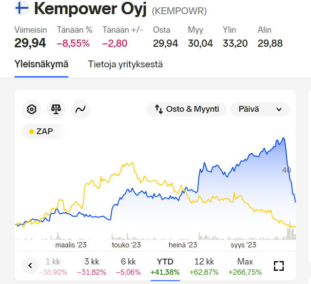 Now Zapâs YTD is -4% and Kempower is still +40%