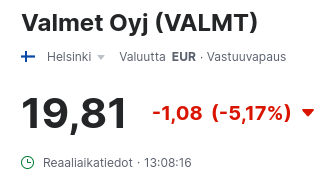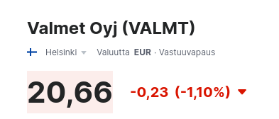 The market is chugging along pretty much flat today, my own portfolio is mostly âboring Finnish stuffâ and -3% on the board. ![]()