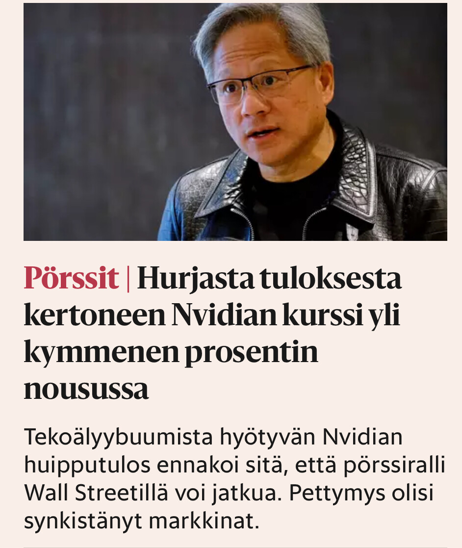 In the Saab thread, thereâs a linked video where an Inderes guy interviews some Saab fellow. (By the way, this Saab guy is quite a sight. Proper messy hair. You wouldnât guess right away from his appearance that the lad is a big shot at a defense company