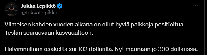 @Jukka_Lepikko also highlighted Tesla’s stock price increase.