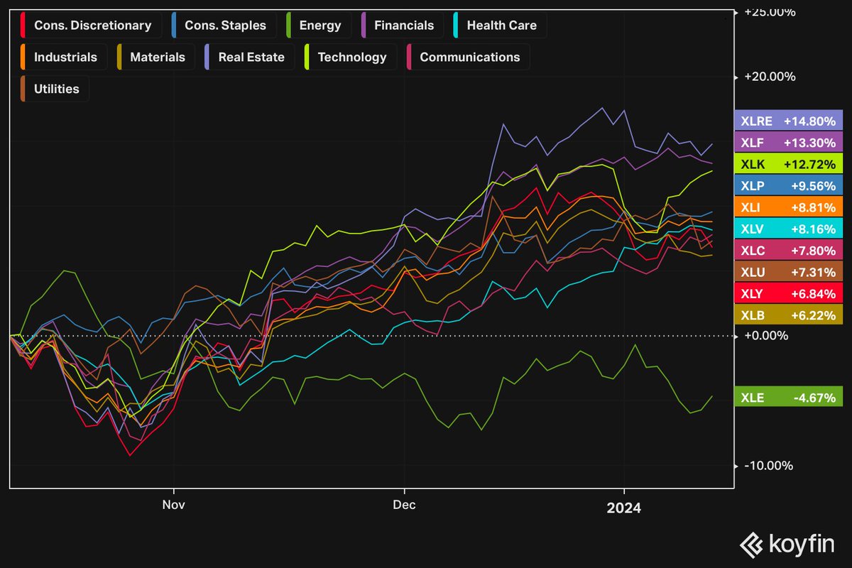 Henri Huovisen tviitti USA:n eri alojen tuottokehityksestä: