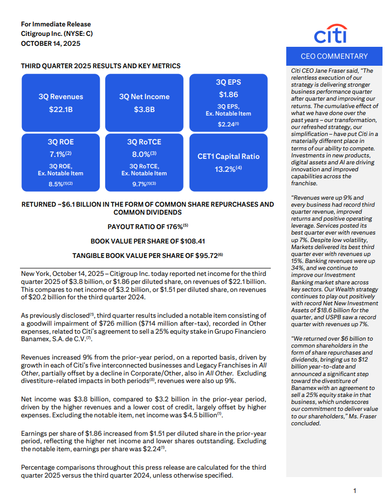 Citi yritti selvästi odotukset, oikein hyvä. Näkymissäkään ei pettymyksiä.