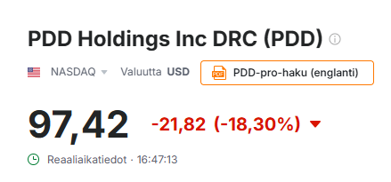 Piti käydä tarkistamassa PDD:n kurssireaktio. Oletin, että laskussa aika paljon, mutta en osannut arvata ihan tällaista.