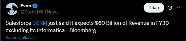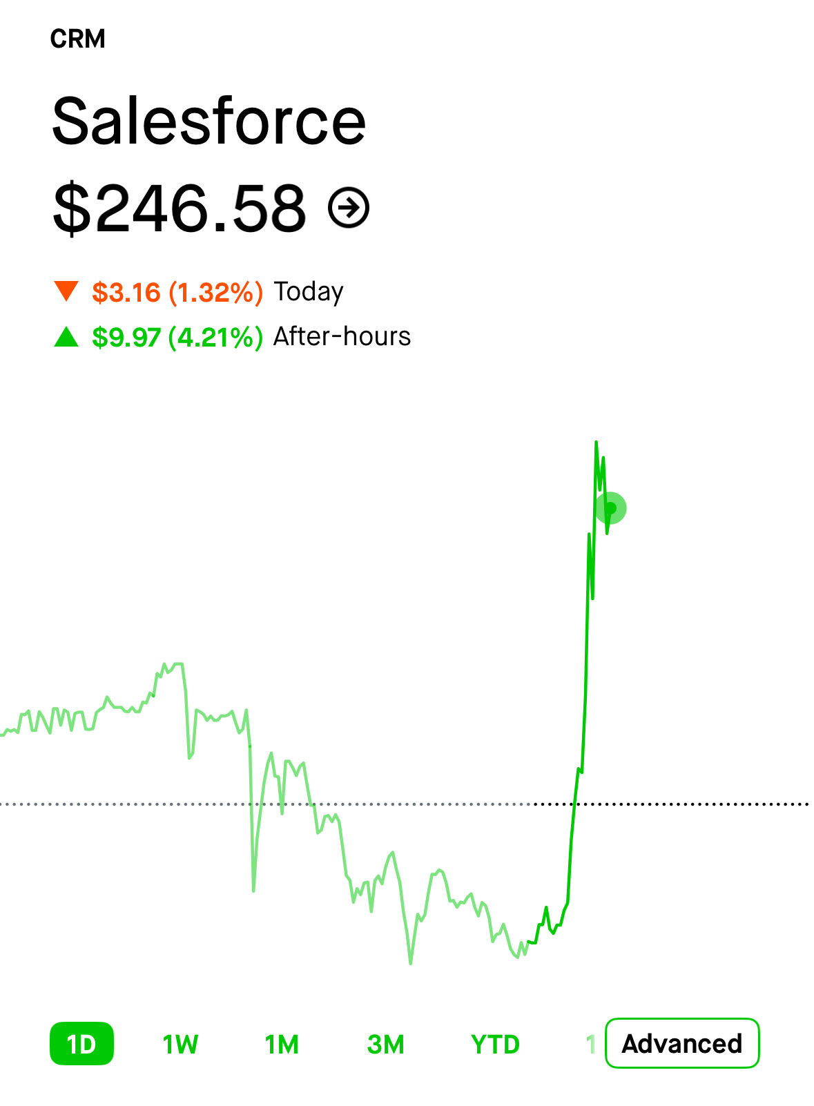 Salesforce is up after-hours, a tweet explains the reason. ![]()
