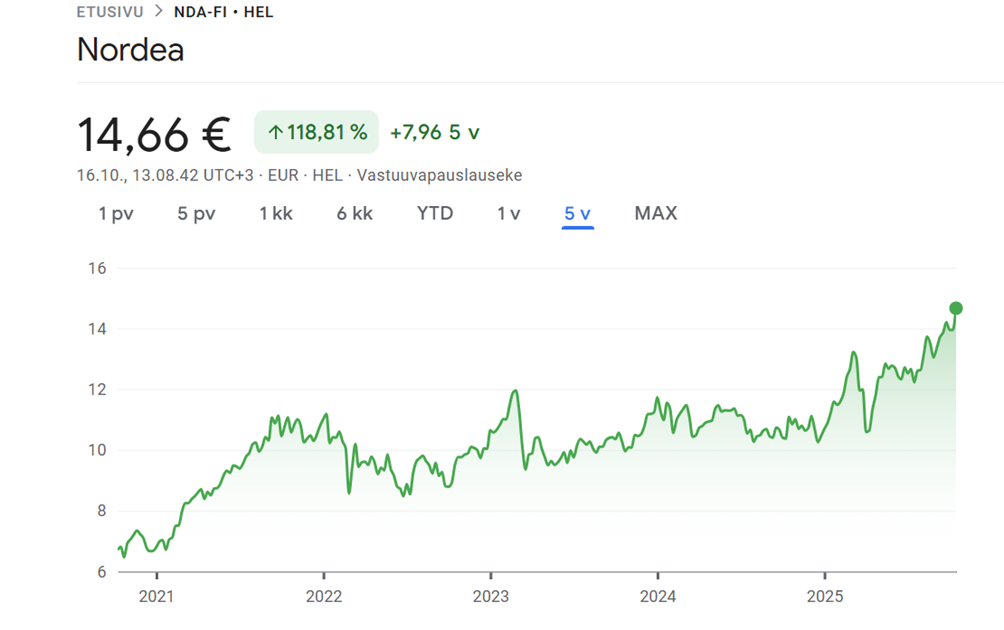 I’m wondering if I should sell my Nordea slice at the ATH price and put it into a company like Huhtamäki, which is historically at a floor-level price. But half of Huhtamäki’s (Huhtis) revenue comes from the USA, and things are deteriorating there. Might get it even cheaper soon? In my calculations, Huhtamäki (Huhtis) is a €25-27 stock if the USA falters even a little.