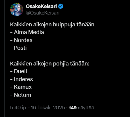 Fortum up almost 4% today. What am I missing? Q3 will only be released at the end of the month, no major electricity investments (data centers, aluminum plant, etc.) are in the headlines, at least…