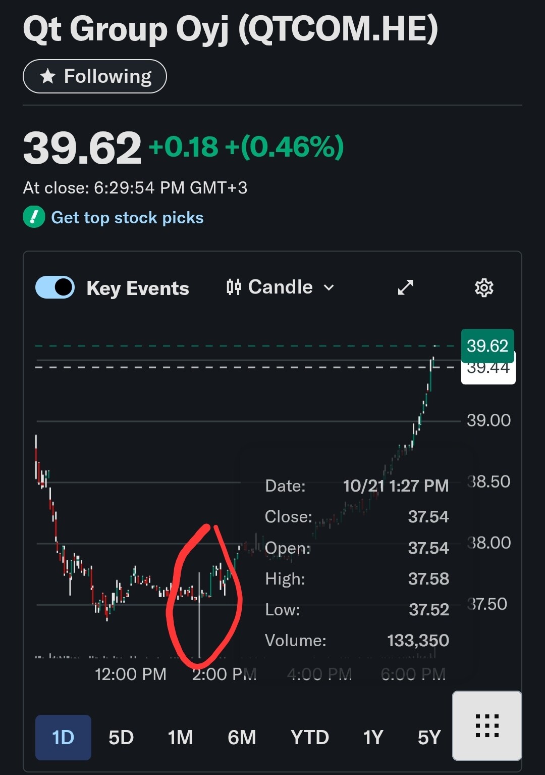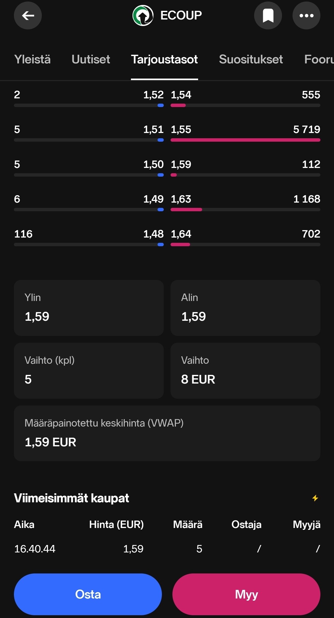 E: Ihan vaan asian vahvistukseksi, osaketta on vaihtunut osaripäivänä jokseenkin 50t€ edestä.