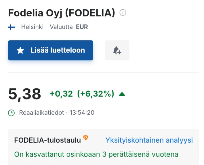 Fodelia Q3 ja kaikissa luvuissa alle analyytikoiden ennusteiden. Ja mitä tekee kurssi. Voi isäkissan v**** tätä pörssimaailmaa!? Kyllä pienellä suppiksella on vielä paljon ihmeteltävää ja opeteltavaa. Tuskin opin koskaan, mutta tämmösen otan kyllä mielellään vastaan. Saas nähä mitä tekee ens perjantaina rakkaani, Kempo.