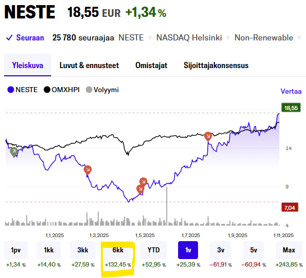 Se on kun nykysijoittajan kvartaali on muutama viikko ja kun Leonardon diilit ei tule parissa viikossa niin kyllästytään koko hommaan. No ei se väärin ole. Pörssi on aina oikeassa🙂