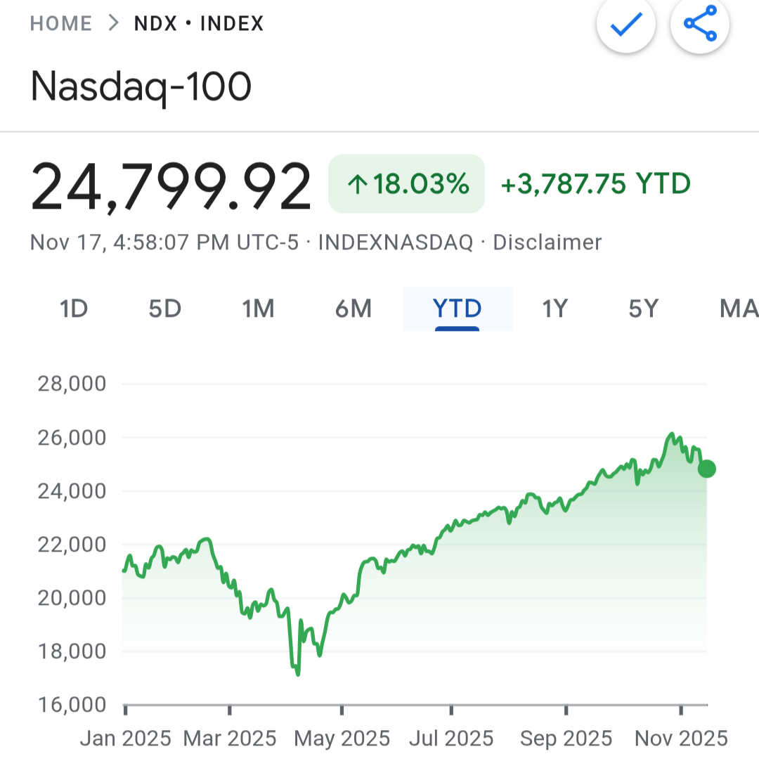 Ikke endnu, vel? At der er lidt spænding, og at der tages gevinster, udløser næppe et bjørnemarked. Først når en lidt vigtigere spiller (Nvidia, TSMC, AMD, Broadcom, osv.) viser svaghed, eller de store reducerer deres investeringer, så går det løs. Selvfølgelig kan f.eks. FED, en uventet stigende inflation eller en økonomi bremset af tariffer også ødelægge festen.