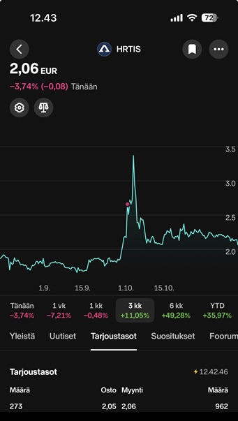 Herantis Pharma er faldet næsten 50 procent (-47%) siden stigningen i begyndelsen af oktober, hvor jeg igen blev fanget, dvs. jeg solgte lige før den manipulerende stigning via “le pump & dump”. Paniksalg på over 52K til 2,10. Jeg har en købsordre et par cent fra den nuværende pris (køber jeg tilbage dem, jeg solgte lidt højere, hvis det lykkes?).