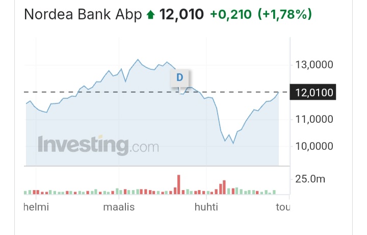 Jos en nyt ihan väärin katsonut ja ymmärtänyt, niin Nordea kurssi kiri kiinni osingon irtoamisen tasolle.