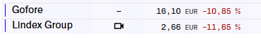 Isolla painolla mentiin Saabin osariin, mutta ilmeisesti hyvä, kun reilu +3% tänään, huh ![]()