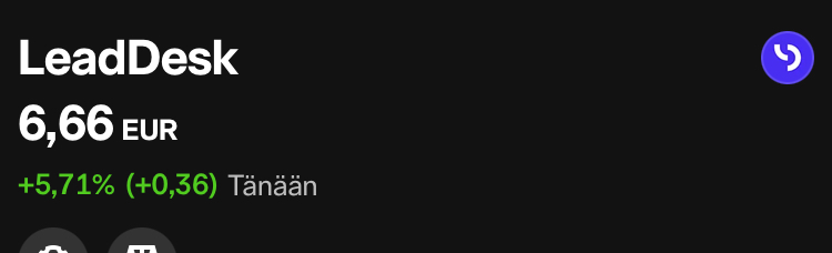 LeadDesk oli jopa yli 6 pinnan nousussa, sitä en ehtinyt hehkuttamaan, mut nyt juhlin tätä suurta viiden prosentin nousua.