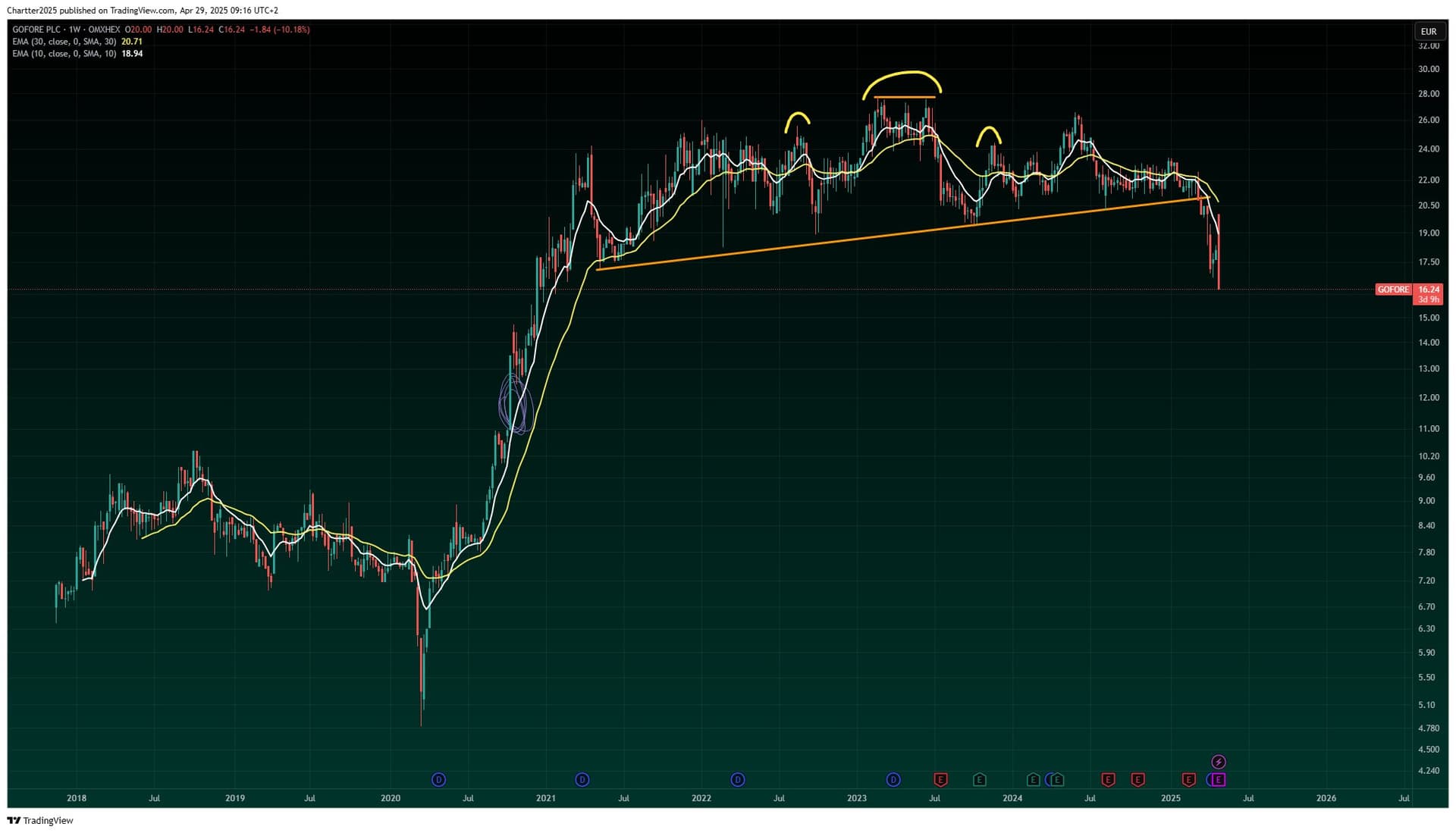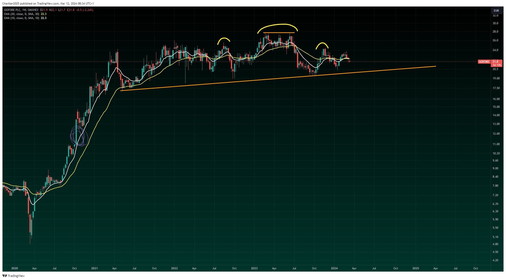 Onhan tämä käsien päällä istuminen hivenen vaikeaa Intellegon suhteen mutta perustelen sen sillä että jos yrityksen omiin tavoitteisiin päästään ja eps arvioihin niin forward p/e on näilläkin kursseillä 15 paikkeilla.