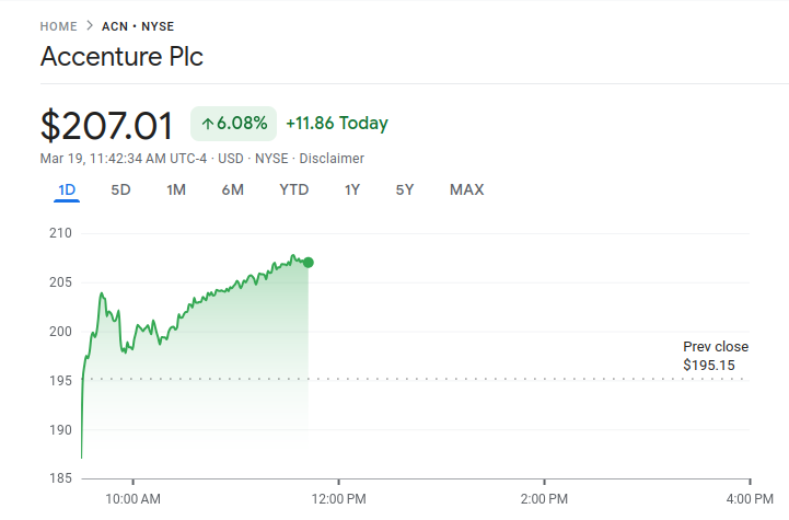 This got me thinking. Dispelling doubts from investors’ minds can take a long time, even years. This doesn’t only apply to Accenture, but to the entire IT services/consulting/software sector right now. The suspicion has been thrown out that artificial intelligence, agents, anti-gravity second brain bumtsibums, and what not (development is progressing rapidly) will disrupt everything.