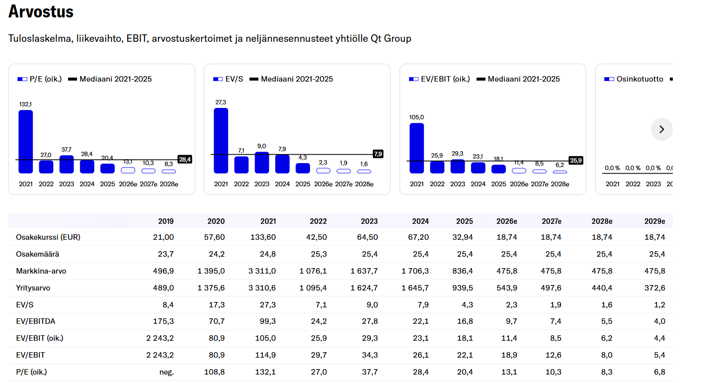 It’s worth noting in your comment that QT’s depreciations are practically purely goodwill depreciations resulting from acquisitions, which are not made in IFRS accounting. So, if you look at the earnings estimates of Inderes and other analysts, these goodwill depreciations are adjusted out. For example, EBIT (adj) is practically EBITA, and EPS (adj) is earnings per share without these goodwill depreciations. So, it’s not very sensible to look at reported EPS.