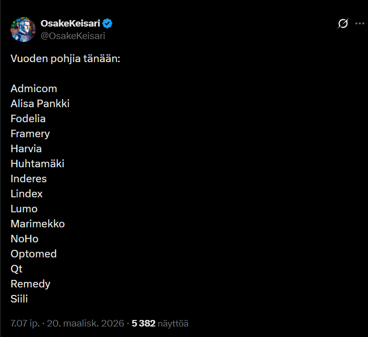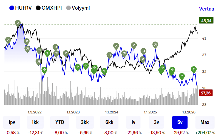 Hurjaa menoa Huhtamäellä. Osinkoaristokraattisuus kiinnostaa, mutta kerrankin en ole tarttunut putoavaan puukkoon. Olisiko nyt kuitenkin arvostus pikkuhiljaa kohdallaan? ![]()
