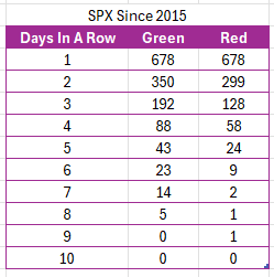 Nyt on takana 8 vihreää päivää putkeen SP500:ssa (SPX) ja jos tämä päivä päätyy vihreälle, niin aletaan tehdä lyhyen ajan ennätyksiä, eli 9 nousupäivää putkeen. ES futuuri (+0.47%) on aika tarkasti vanhan balanssin keskikohdalla 5662.25 (tai hieman sen alapuolella 5649.50) ja markkinan price action on erittäin mekaanista. Jos tuo keskikohta ylitetään ja pidetään, niin seuraavat seuranta-alueet on itsellä ES 5682, 5702 (vanhan balanssin ylälaita) ja 5742. Alapuolella seuraan 5623 sekä 5602 ja niiden testausta. Ensiviikon price-action tulee olemaan erityisesti seurannassa, koska noissa ylemmissä tasoissa esintynee viimeistään jonkin verran myyntiä, jos sinne noustaan. Shorteilla on ollut melko vaikeaa viime aikoina.