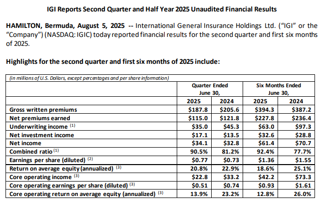 IGIC business normalizing after Q1 (US residential fires). The dollarâs decline was seen as a negative elsewhere but boosted investment returns.